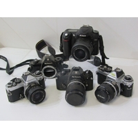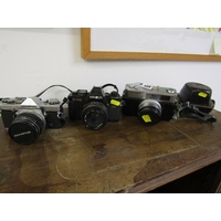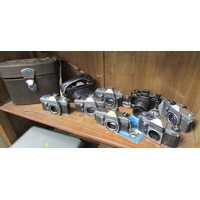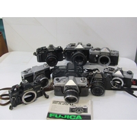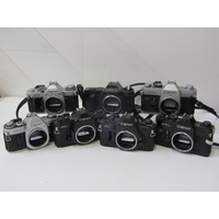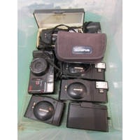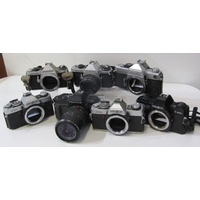 PHOTOGRAPHY; OLYMPUS OM20 35mm camera with Zuiko 35-105mm auto lense and strap, Olympus OM2 camera with 50mm Zuiko lense, Olympus OM30 with Miranda 28mm lense and strap, Olympus OM10 with Zuiko lense, another OM20 camera with Zuiko lense, Olympus OM101 Power Focus camera, a/f and 1 other Olympus camera, a/f(7 cameras).