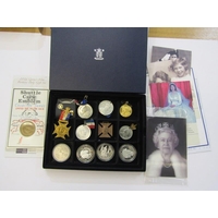 1893 VICTORIAN GOLD & SILVER 10 COIN PROOF SET: 1893 Victoria gold 5 pound, 2 pound, sovereign & half sovereign & silver crown, half crown, florin, shilling, six pence & three pence. A lovely collection in superb condition with even rainbow toning on the silver, housed in original Victorian display box in good condition.Hammer: £33,500