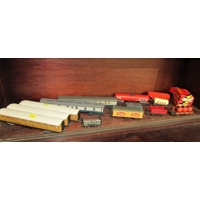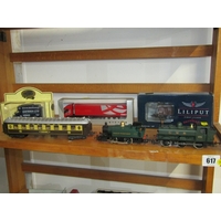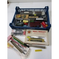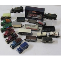 RAILWAY, various railway carriages and passenger cars, 00 gauge Hornby Royal Mail coach, 2 x Jouef boxed HO railway SNCF green carriages, Hornby car transporter, 3 Triang passenger carriages, 2 Triang passenger cars and also a buffet car, 2 American Triang observation cars, etc.Hammer: £ 28