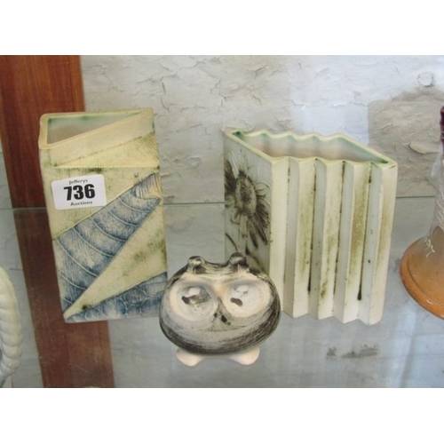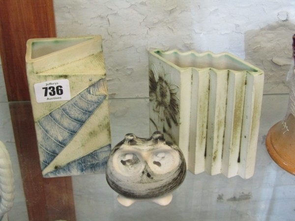 CARN POTTERY, 2 Carn pottery vases, together with a novelty Carn model of an owl
