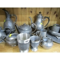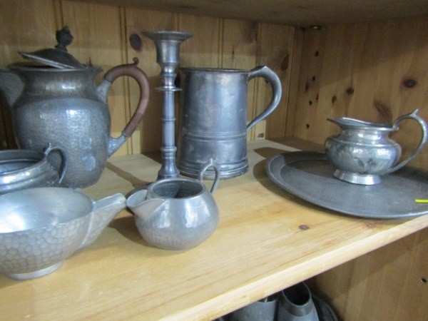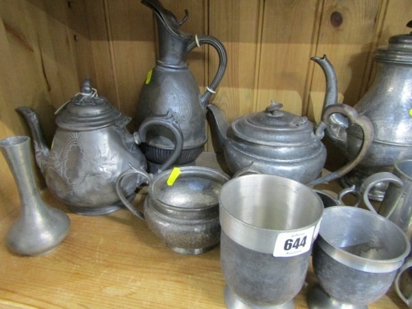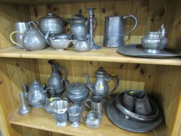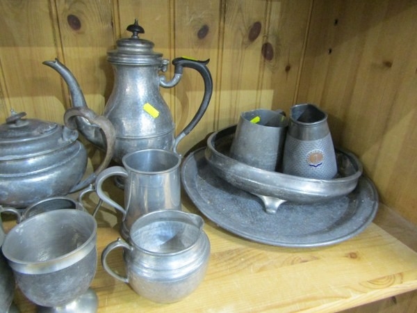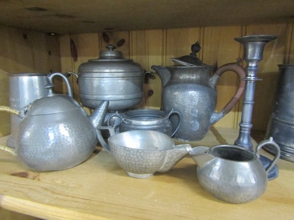 PEWTER, a large selection of old pewter items including a James Yates tankard, teapots, jugs & other items