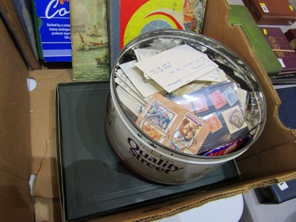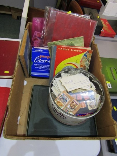 STAMP COLLECTION, KILOWARE, ETC, box containing better than average stock book/starter collection books, kiloware, stock book, various cigarette cards and a tin of kiloware