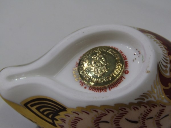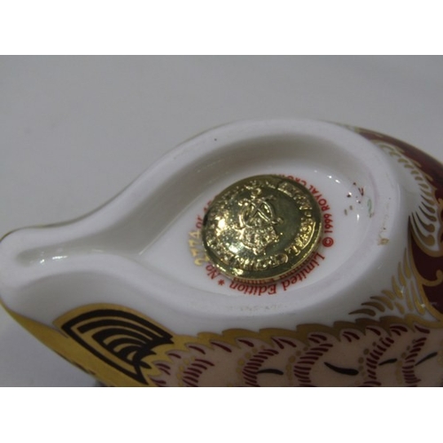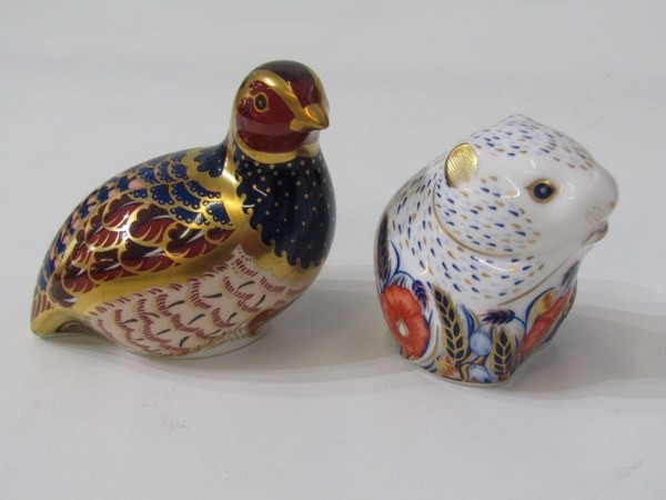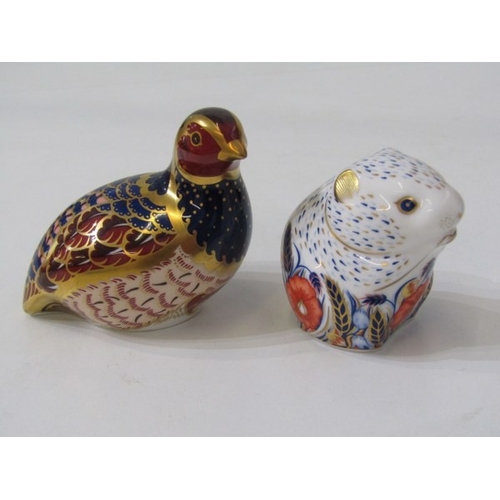 ROYAL CROWN DERBY, 2 Royal Crown Derby gold seal bottomed paperweights, 1 entitled 'Poppy Mouse' and another of a game bird