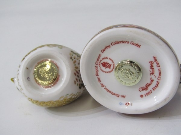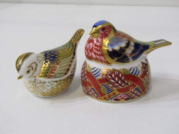 ROYAL CROWN DERBY, 2 Royal Crown Derby paperweights, 1 titled 'Chaffinch Nesting' and another