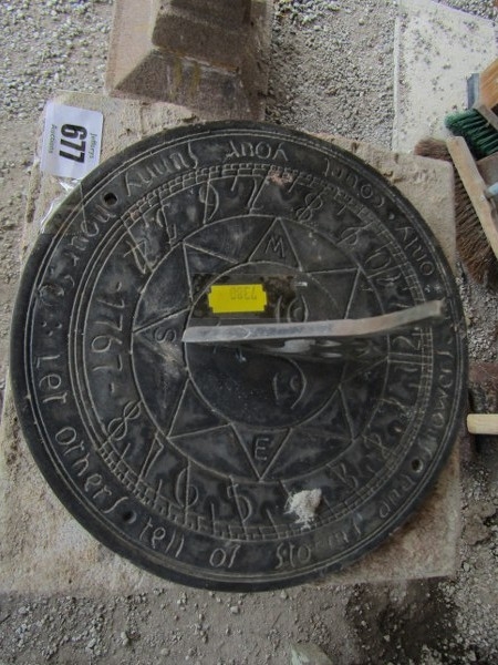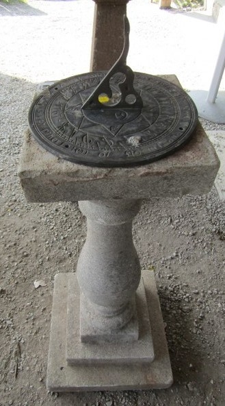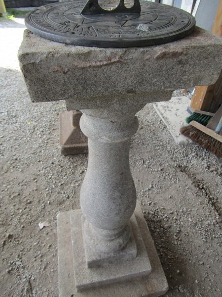 SUN DIAL, brass sun dial on a baluster column support and square form base, 72cm height