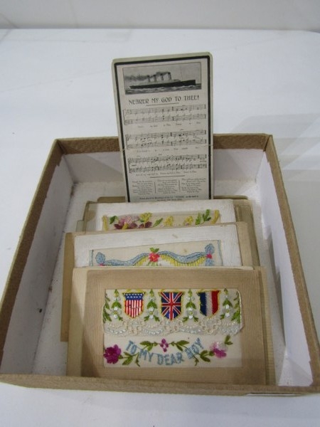 TITANIC POSTCARD, an Edwardian "Nearer my God to thee", in memoriam Titanic postcard, together with a quantity of WWI silk postcards and others