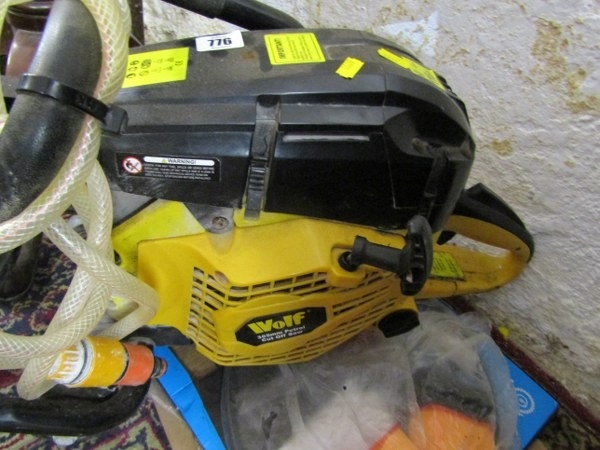 TOOLS, a Wolf 305 MM petrol cut off saw, with accessories and instructions
