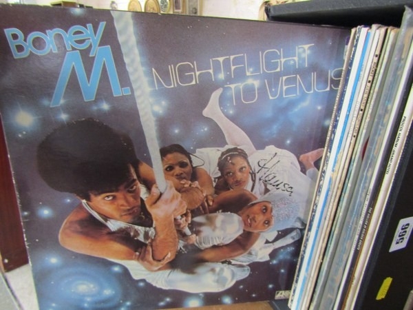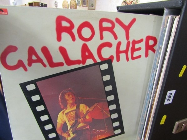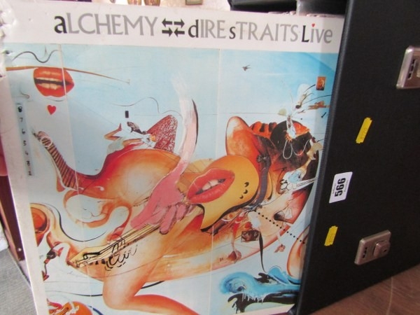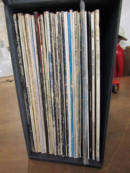 VINTAGE VINYL LP RECORDS, black record case containing approx 30 LP records; Dire Straits live, Procul Harum, Hollies, Tubular Bells, Beach Boys, also 80s including T'Pau, Howard Jones, etc