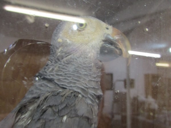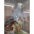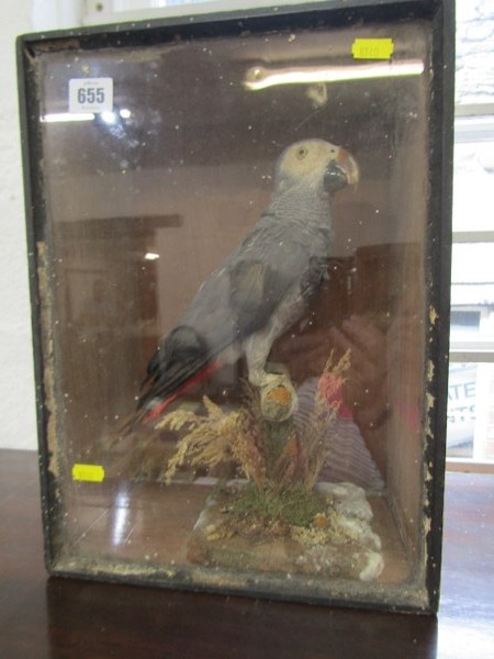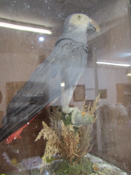TAXIDERMY, an African grey parrot in glazed case, height 38cm