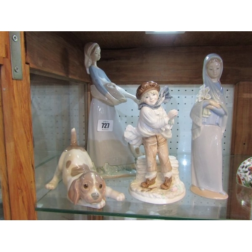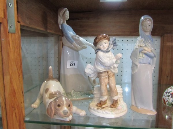 LLADRO, "Girl with goose and puppy", "Girl with flowers", "Puppy" and Coalport "The Boy" (4 figures in total)