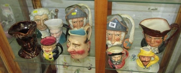 ROYAL DOULTON CHARACTER JUGS, 2 Don Quixote Royal Doulton character jugs, with 2 other and 6 other various character jugs
