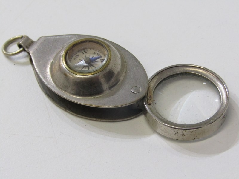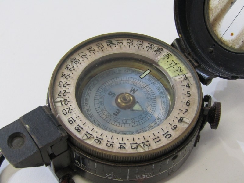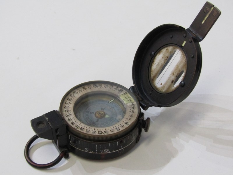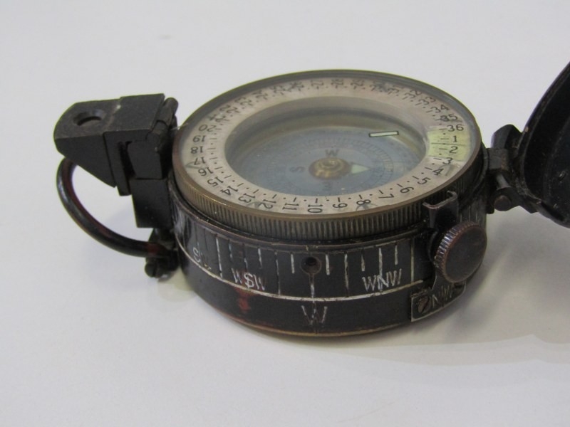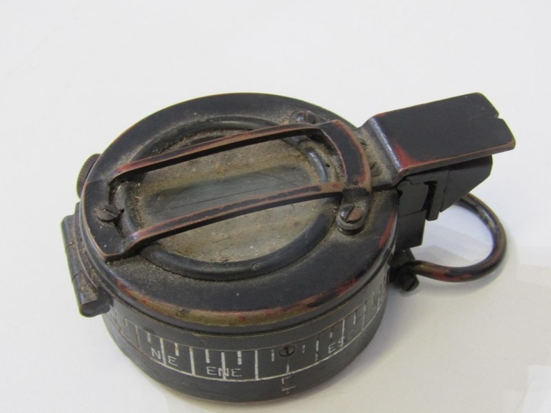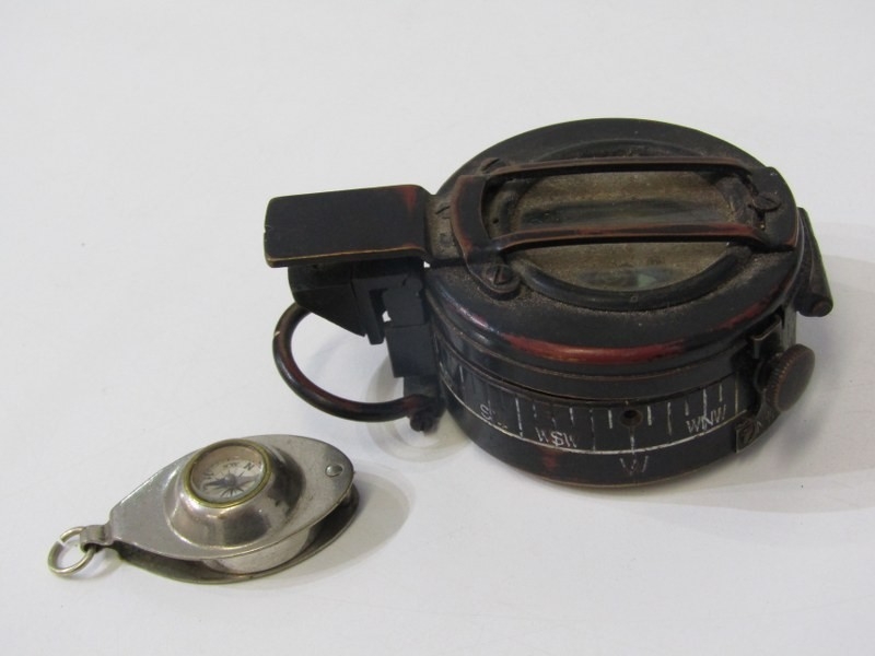 MILITARY COMPASS, WWII military compass by T. G. Co Limited, London, no 216838, MKIII, dated 1943, also a miniature pendant compass