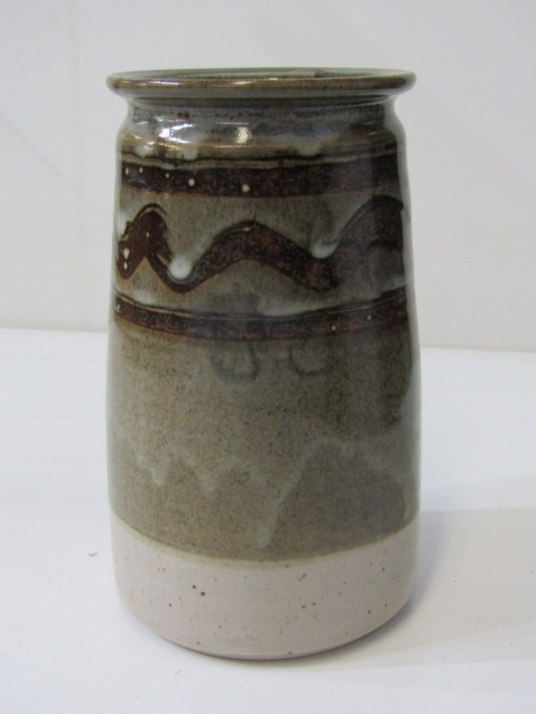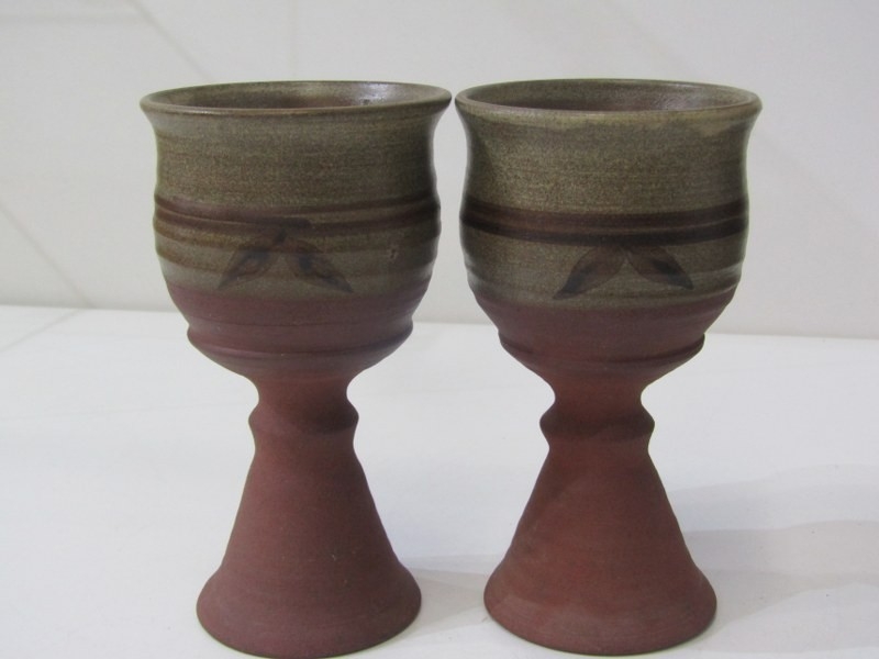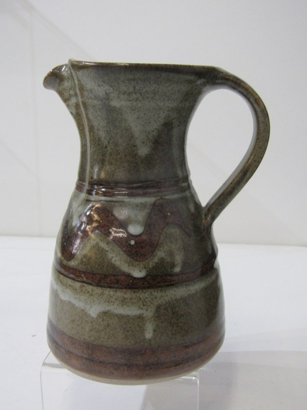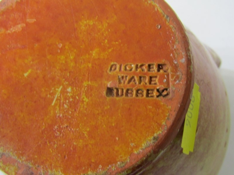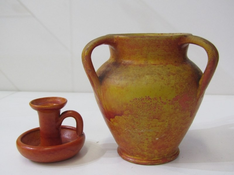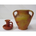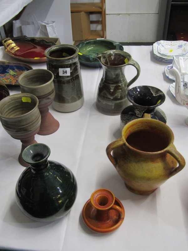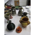 ART POTTERIES, collection of art pottery, including a Dicker ware jug and chamberstick, art pottery cylindrical vase, water jug with running glaze, bottle vase, goblets, etc