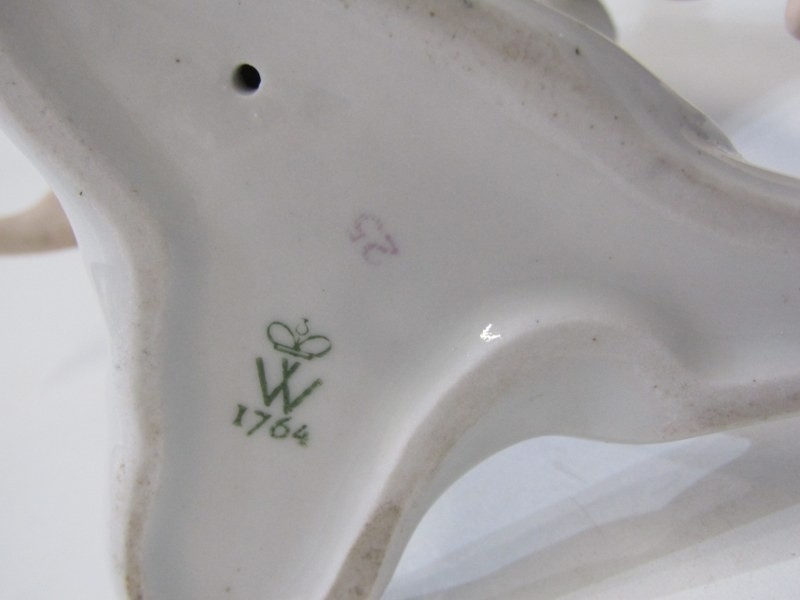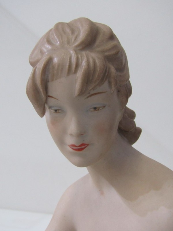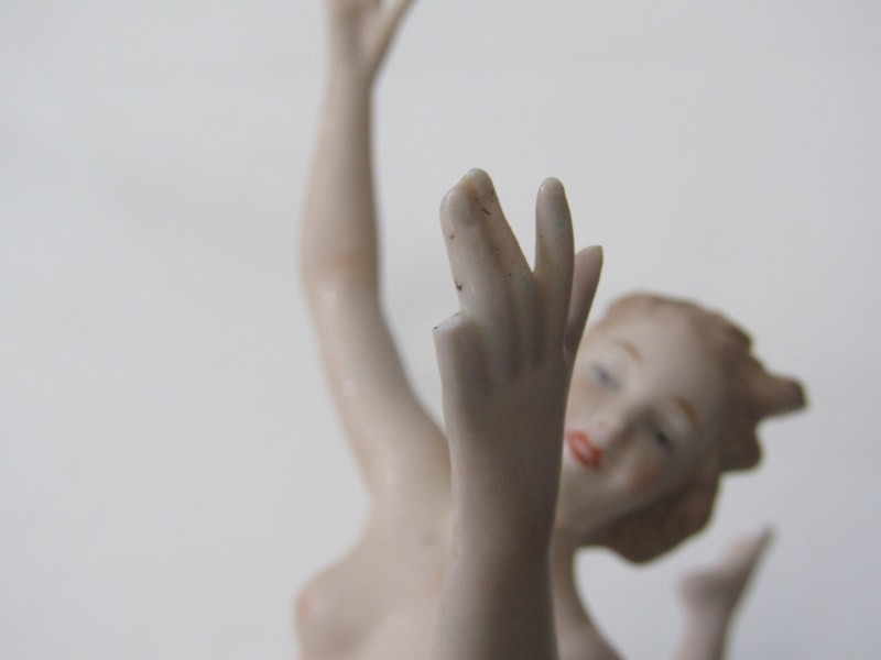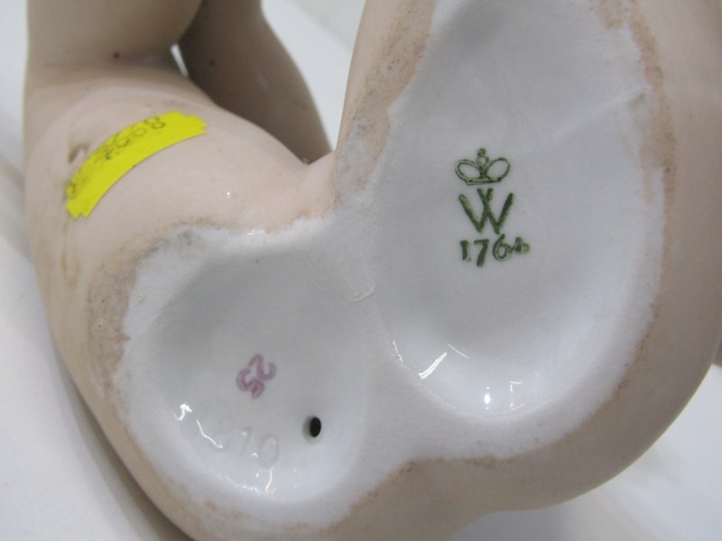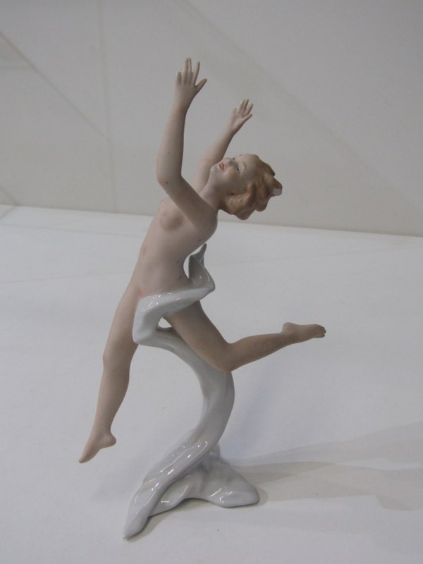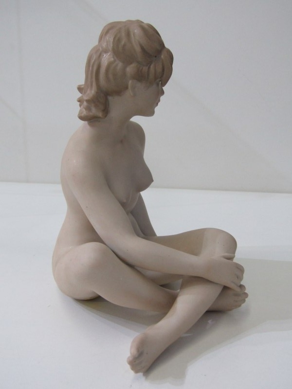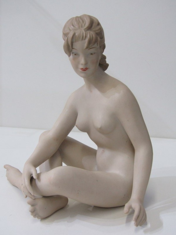 CONTINENTAL PORCELAIN FIGURES, 2 Wallendorf porcelain figures 1 of a naked dancer, 30cm height, together with a similar figure of a seated lady, 22cm height