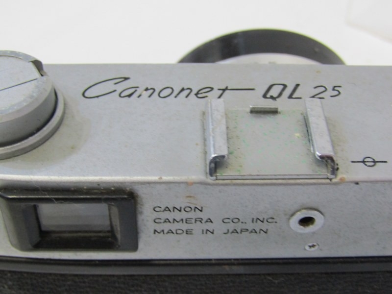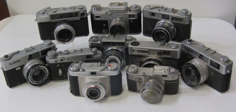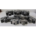 PHOTOGRAPHY - vintage cameras; Samoca LE II camera, USSR Kiev camera, EMI K camera, 2 x Canon Canonet QL25 cameras, Yashica minister D, Edixa Pronto, etc