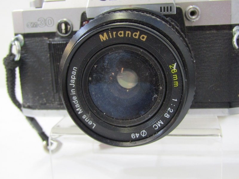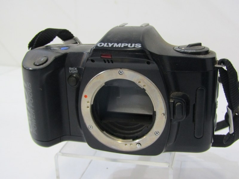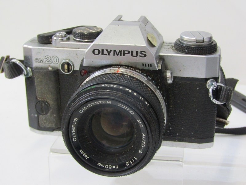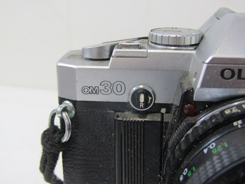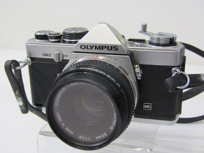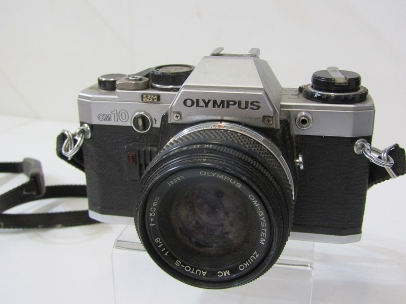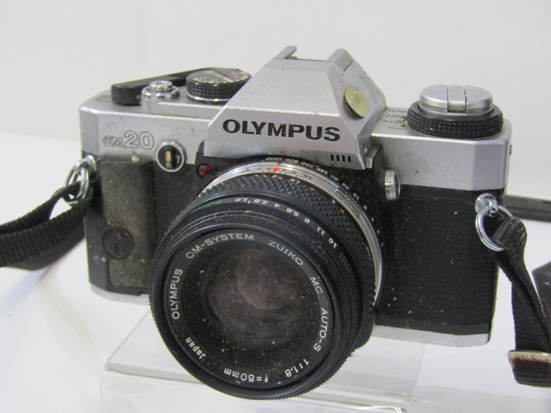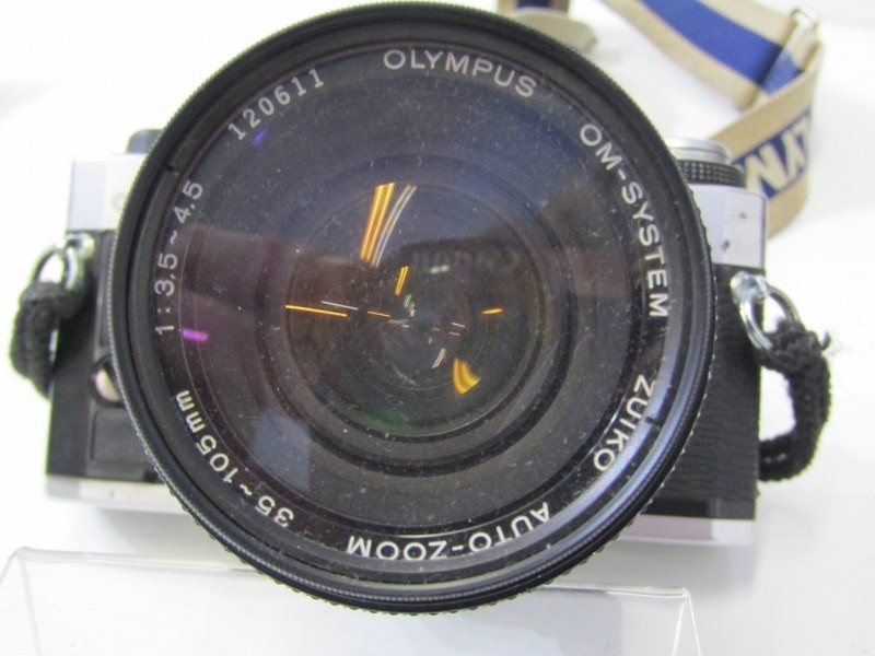 PHOTOGRAPHY; OLYMPUS OM20 35mm camera with Zuiko 35-105mm auto lense and strap, Olympus OM2 camera with 50mm Zuiko lense, Olympus OM30 with Miranda 28mm lense and strap, Olympus OM10 with Zuiko lense, another OM20 camera with Zuiko lense, Olympus OM101 Power Focus camera, a/f and 1 other Olympus camera, a/f