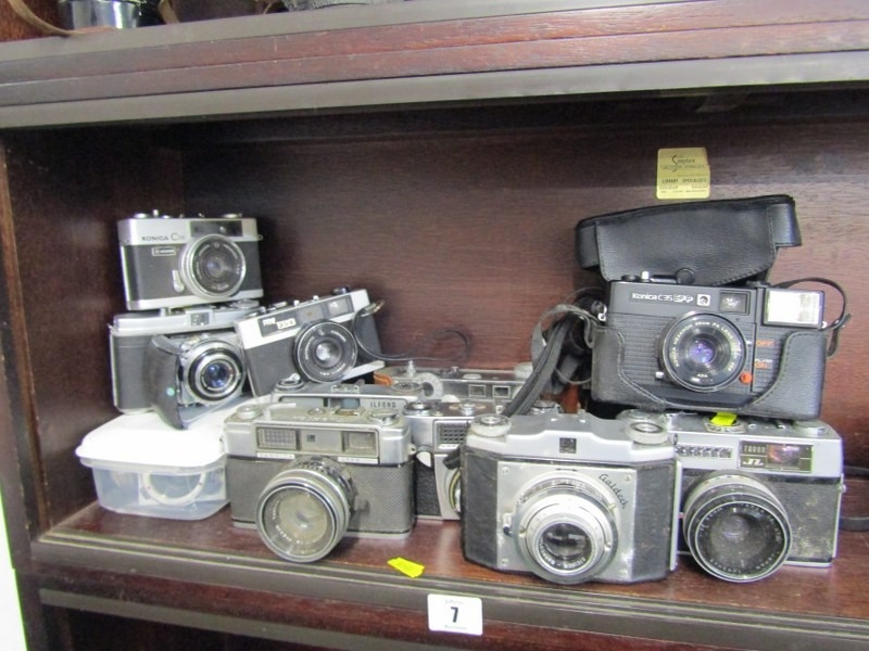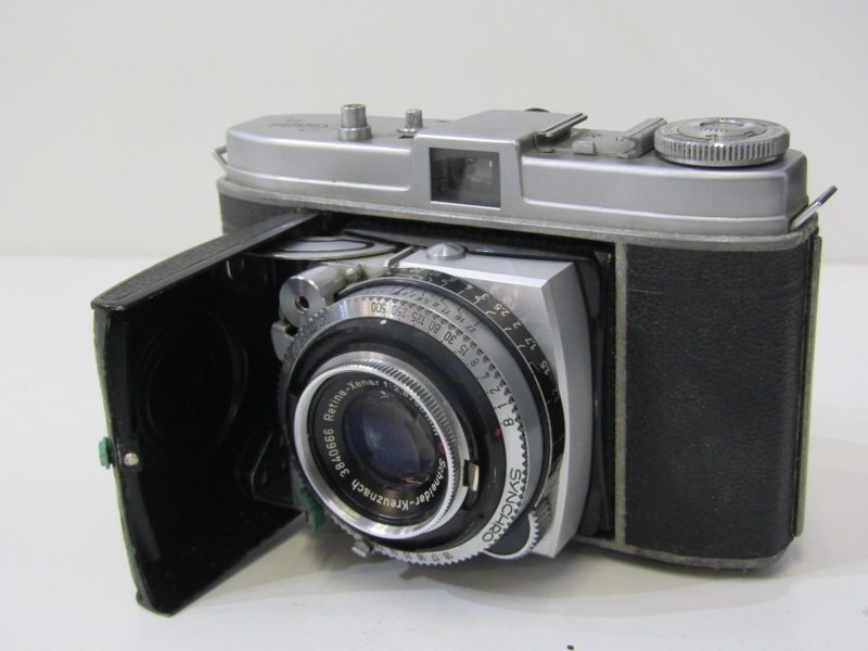 PHOTOGRAPHY, vintage collection of cameras to include; Kodak Retina 1B Camera with Xenar 1:2.8 50 mm IB Schneider Kreuznach, Yashica Lynx 1000, Yashica Minister III, Konica C35 EFP, Agfa camera, Ilford Sportsman, Goldeck camera, Konica C35, Taron JL camera, Argus camera, Prinz 35-E camera and various spares