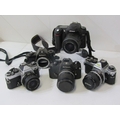 PHOTOGRAPHY, Nikon DX VR D50 camera with Nikon AF-S DX Nikkor 18-55mm lense and strap, a Nikon EM M90 camera with zoom 36-72mm lense, Nikon camera with Nikkor 35mm lense,Nikon camera with RMC Tokina 28mm lense, also Nikon EM M90, a/f (5 cameras)