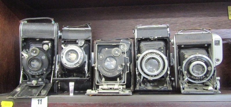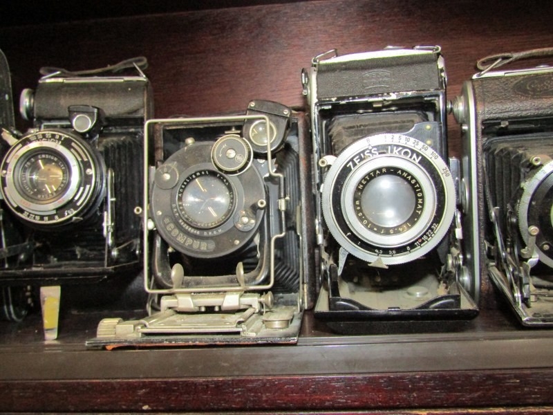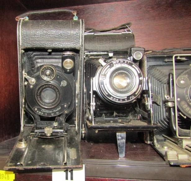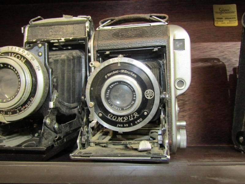 PHOTOGRAPHY, vintage folding cameras including Ensign Compur, Ziess Ikon, Cameo Compur, Contessa Nettel and an Ensign