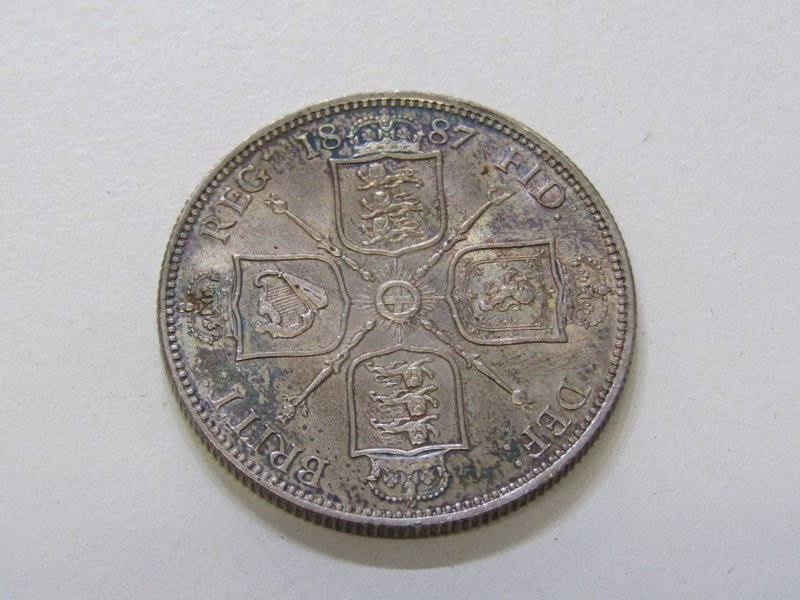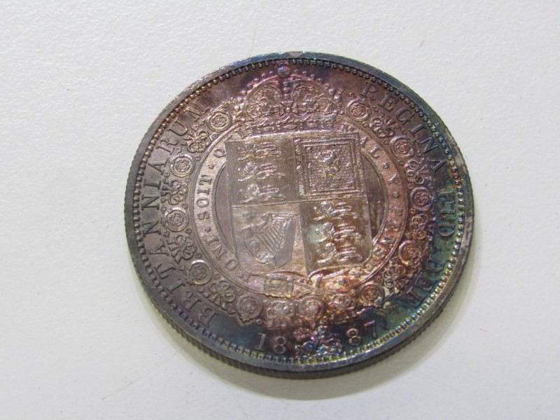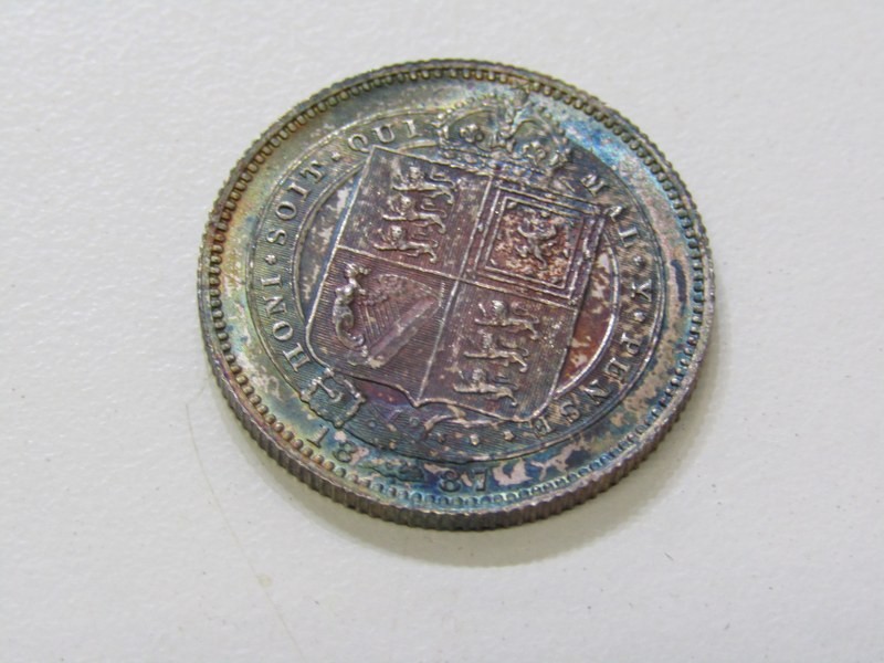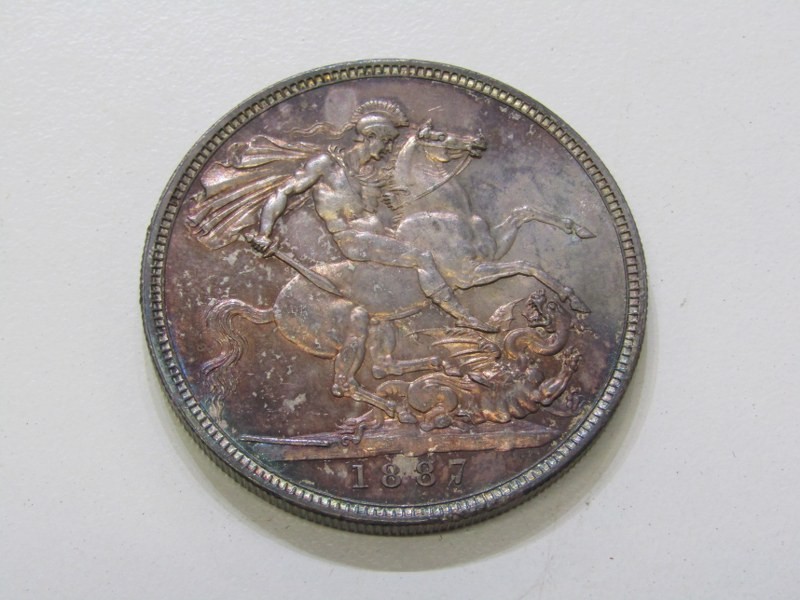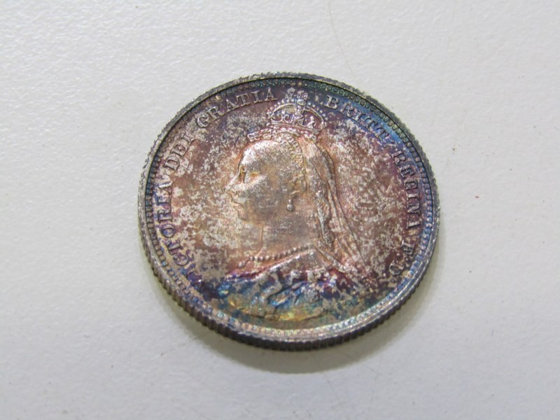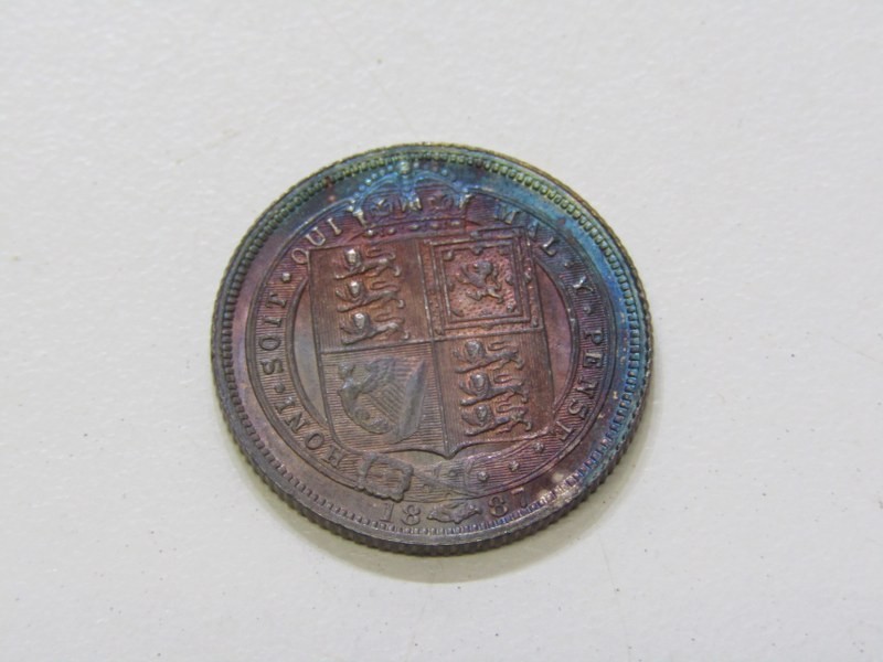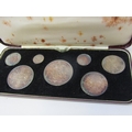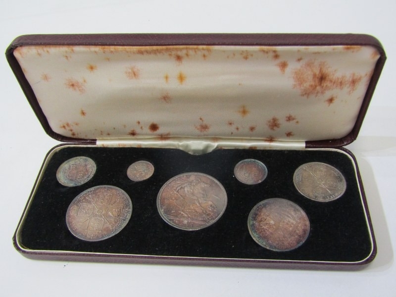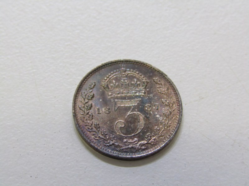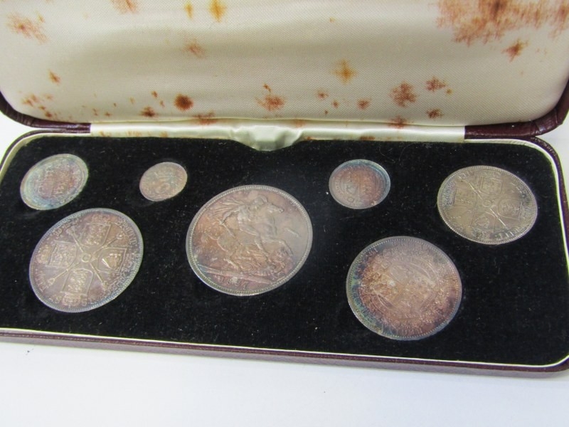 1887 Victoria Jubilee Specimen set consisting of a sterling silver crown, double florin, halfcrown, florin, shilling, sixpence & threepence. The coins are high grade examples with some having rainbow toning & presented in an original bespoke case.