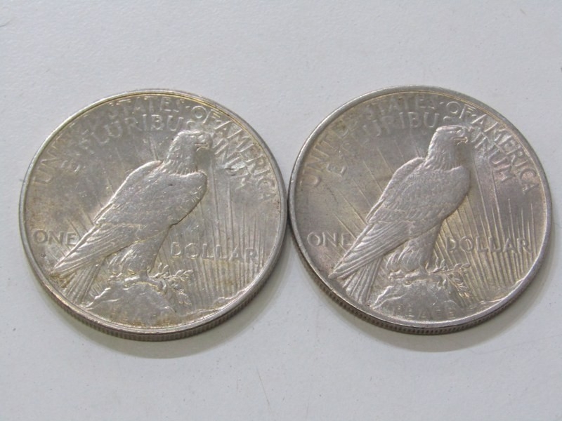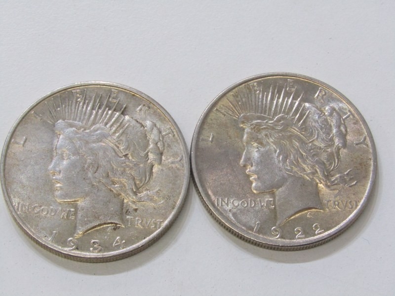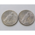 1922/1934 USA Silver ‘Peace Dollars both good examples in higher grade. 26.2 grams each