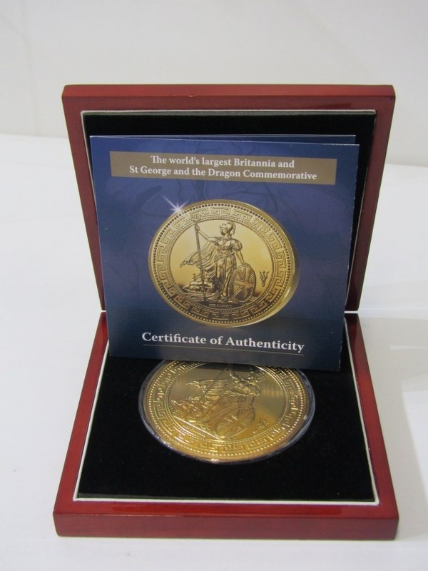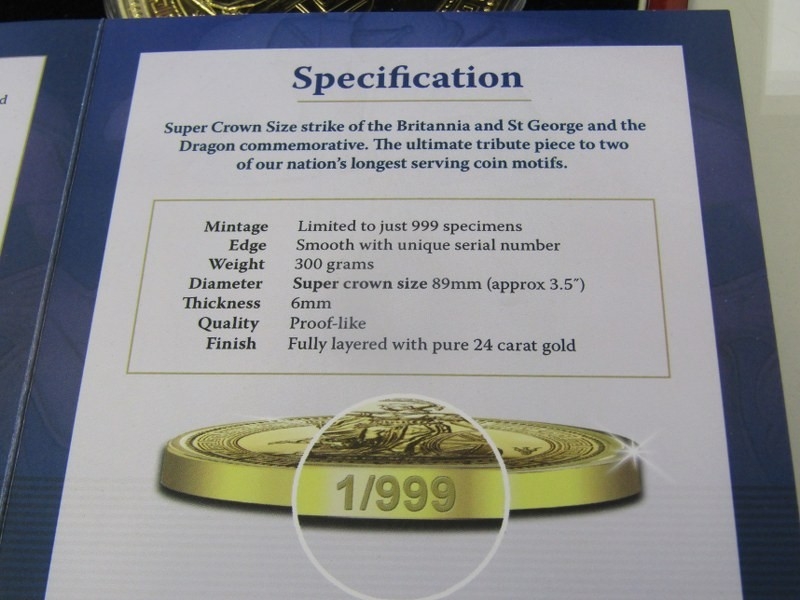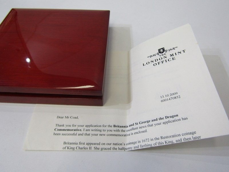 WITHDRAWN - WITHDRAWN 2009 Gold-plated silver Britannia St George & the Dragon coin. Capsuled in London Mint presentation case with accompanying CoA. 155.53 grams of .925 silver fineness. Limited edition 304/450.
