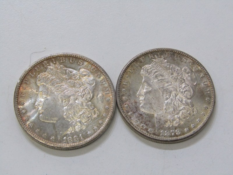 1878-S/1881-S USA Morgan Silver Dollars, San Francisco Mint, both in high grade with fine toning. 26.8 grams each