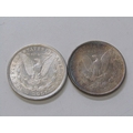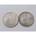 1886/1921 USA Morgan Silver Dollars, Philadelphia Mint, both in high grade with the 1886 having fine toning. 26.8 grams each