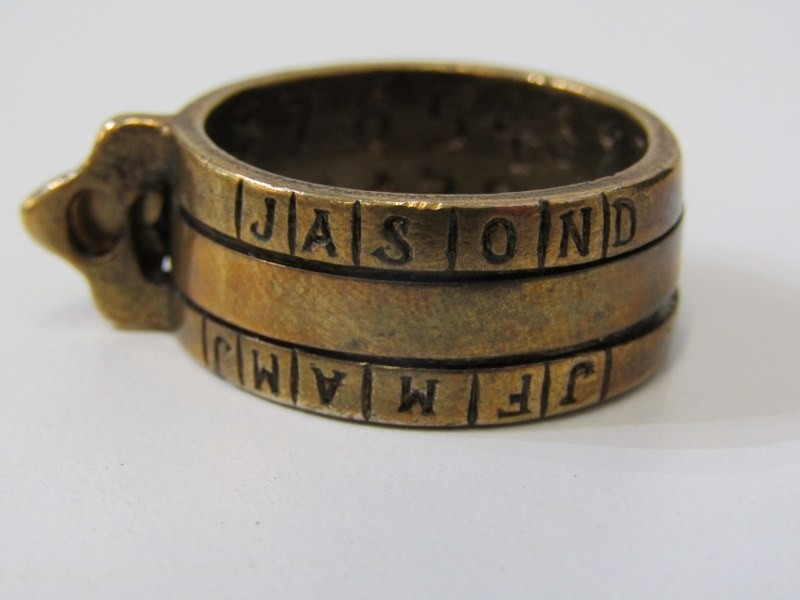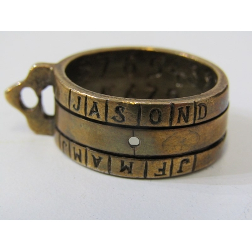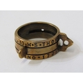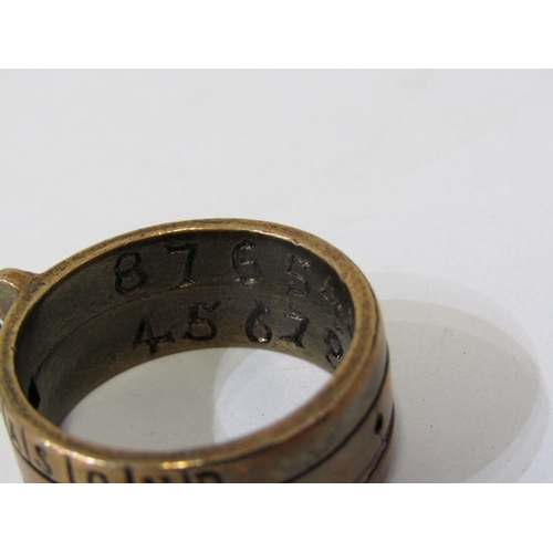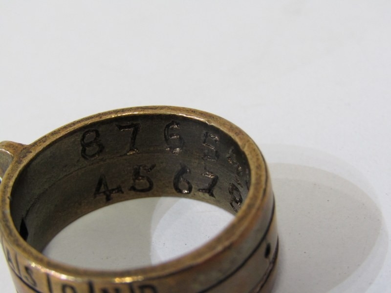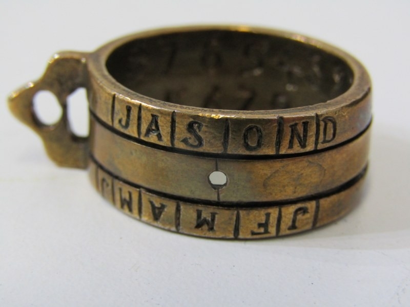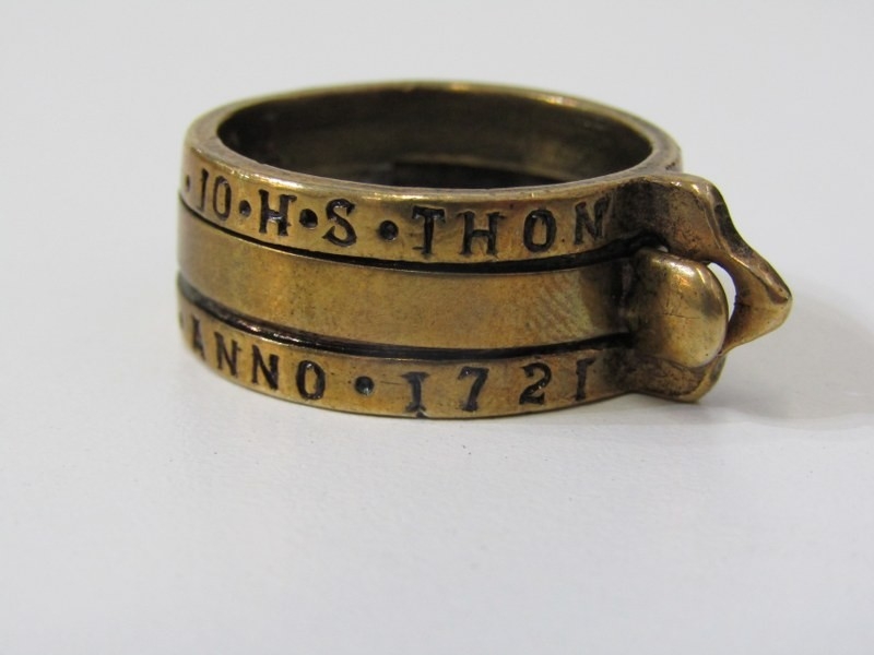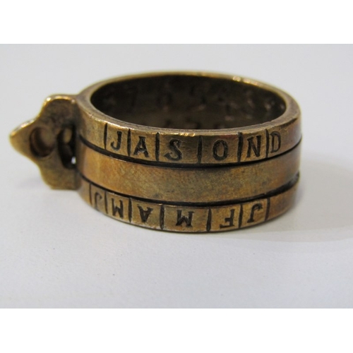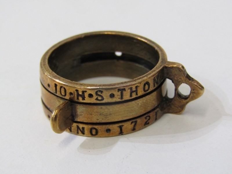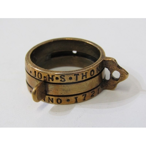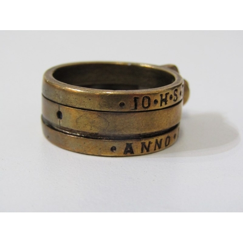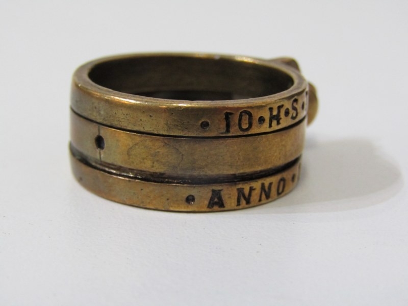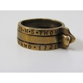 AN UNUSUAL 18th CENTURY SUNDIAL RING, a yellow metal sundial ring, size 2-3