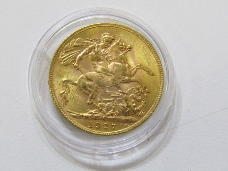 GOLD SOVEREIGN, George V 1927 high grade gold sovereign