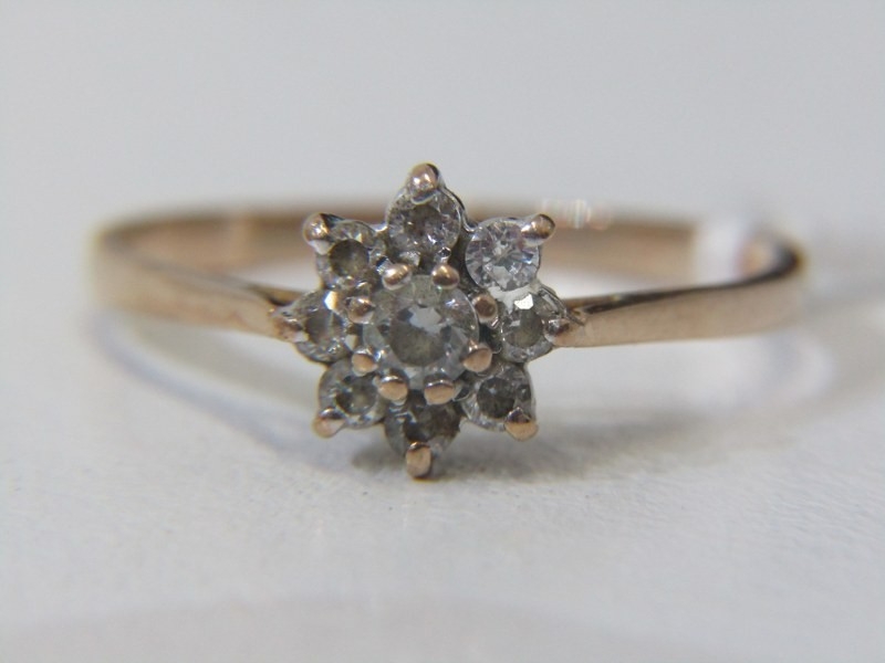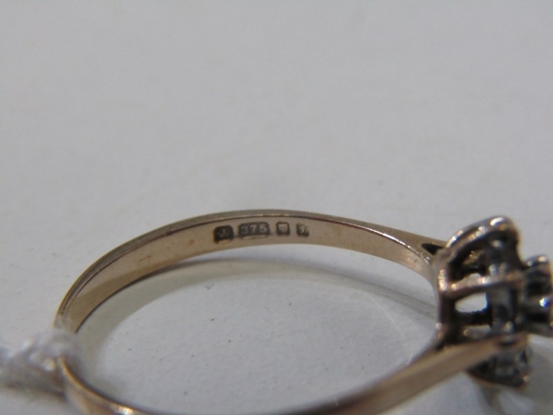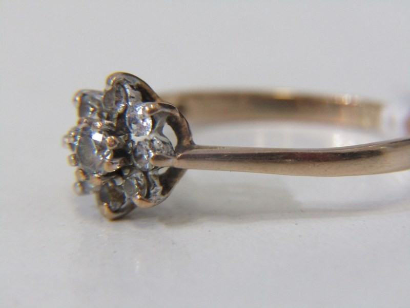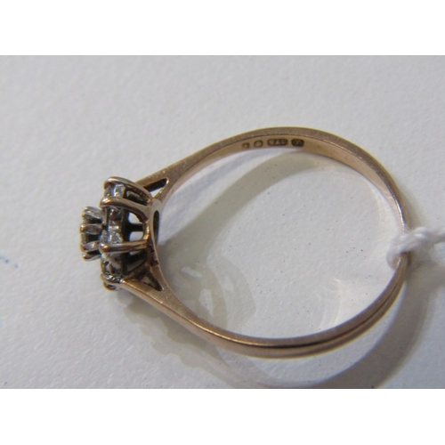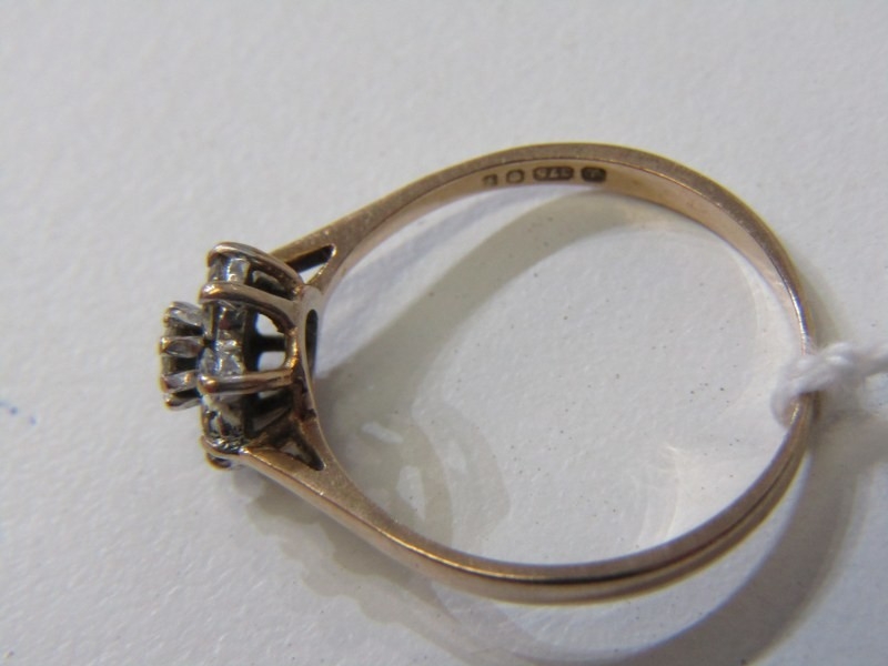 CLUSTER RING, 9ct yellow gold ring set with a white stone cluster, size R