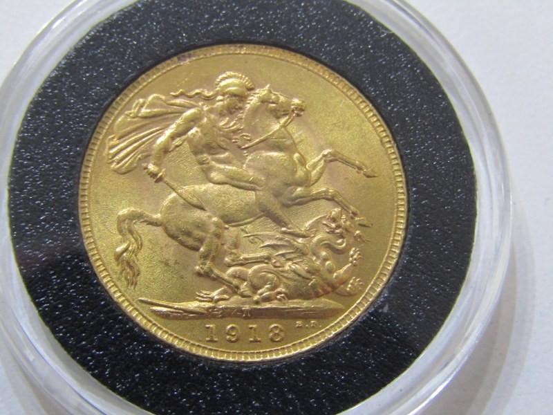 GOLD SOVEREIGN, George V 1918 gold sovereign, high grade