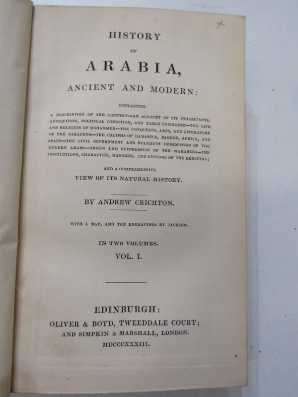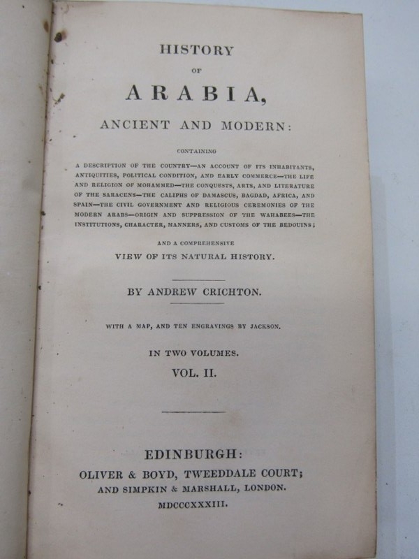 ANTIQUARIAN BOOKS, History of Arabia, Ancient and Modern by Andrew Crichton, 2 volumes, 1833, original bindings