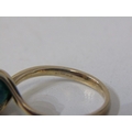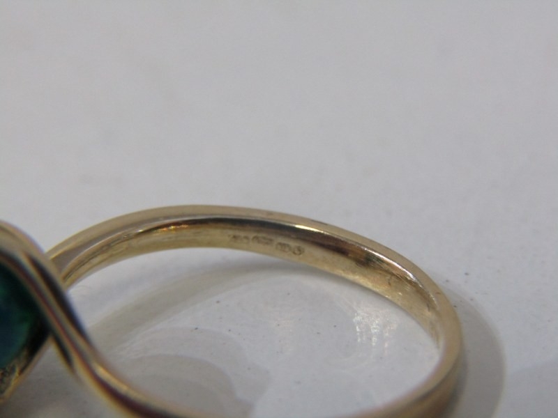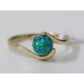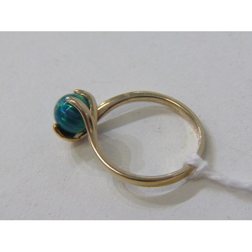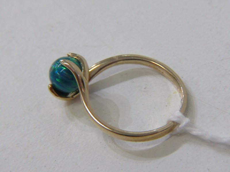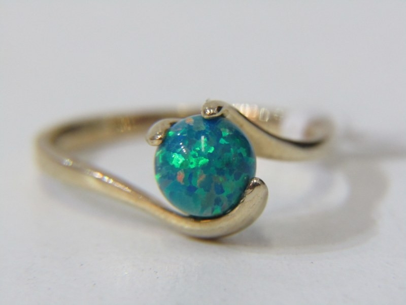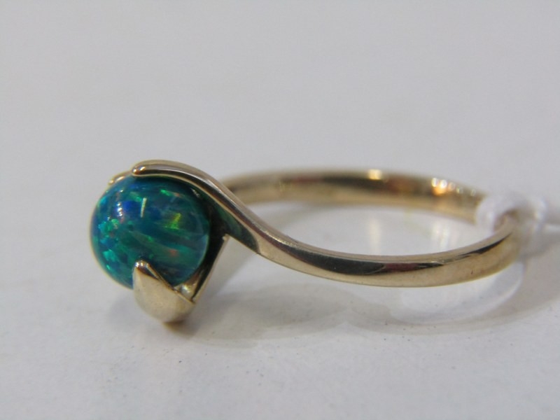 OPAL RING, a 9ct yellow gold ring set with a circular opal in a cross over setting, size K