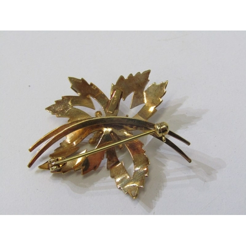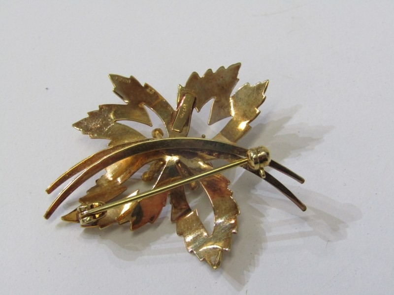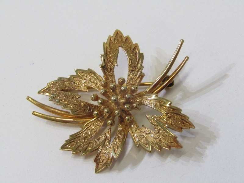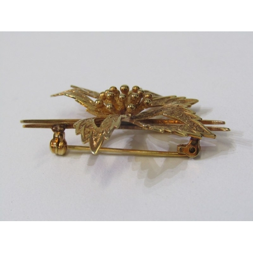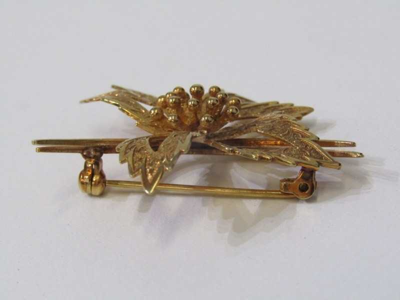 GOLD BAR BROOCH, 9ct yellow gold flower and leaf design bar brooch, 4cm length, 6.5 grams